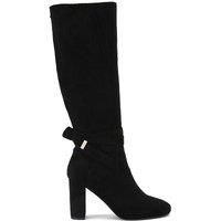 This Carvela Wide Leg edition of the Tempt High Leg boot features a black microsuede with an upper that reaches the knee. There is a knotted ankle strap with gold tone tip. Heel height: 8.5cm. This product features All Day Long technology. | Carvela Women's 'Tempt High Leg Wide Fit' Boots in Black | Size: 8