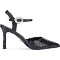 This Carvela Rimini 2 Part heel is crafted from a black lizard embossed leather alternative. There is a crystal oval trim surrounding the buckle strap. Heel height: 8cm. This product features All Day Long technology. | Carvela Women's 'Rimini 2 Part' Heels in Black | Size: 6 - Manufacturers part number: Carvela_5045658909478