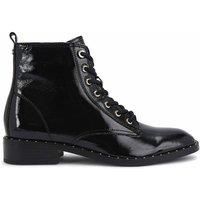 This Studio Spike boot is crafted from a black patent leather. The front laces up with gold eyelets and studs surrounding the sole. | Carvela Women's 'Studio Spike' Patent Boots in Black | Size: 3