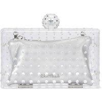 This Cristallo Clutch Bag is crafted from a clear perspex which is embellished with crystals. There is a silver embellished zipped pouch inside for important items. 11cm (H), 17cm (L), 5cm (D). Strap length: 122cm. Optional cross body strap. Can fit phones up to 6inches. | Carvela Women's 'Cristallo Clutch' Bag in Silver - Manufacturers part number: Carvela_5045659186571