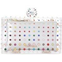 This Carvela Cristallo Clutch Bag is crafted from a clear perspex which is embellished with multi-colour crystals. There is a silver embellished zipped pouch inside for important items. Dimensions: 11cm (H), 17cm (L), 5cm (D). Strap length: 122cm. | Carvela Women's 'Cristallo Clutch' Bag - Manufacturers part number: Carvela_5045659340980