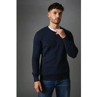 Cotton Cable V-neck Jumper from Maine. Smart in style and designed with the softest fabrics, discover this statement men's V-neck jumper today. Featuring long cosy sleeves with stretch cuffs, a modern V-neckline, and a tailored cut finish for the perfect fit. Crafted from 100% Cotton. Wash at 40. Model wears a Size M. | Debenhams Men Premium Pure Cotton Cable V-neck Jumper in navy | Size: X-Large - Manufacturers part number: Debenhams_5045694661378