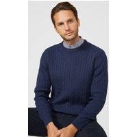 Cotton Cable Crew Neck from Maine. Upgrade your knitwear attire with statement styles and discover this must-have men's cotton jumper. Featuring long-fitted sleeves with stretch cuffs, a circular neckline, and a tailored cut finish for the perfect fit. Made from 100% Cotton. Wash at 40. Model wears a Size M. | Debenhams Men's Premium Pure Cotton Cable Crew Neck Jumper in Navy | Size: Small