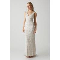 Introducing Our Plunge Floral Embellished Wedding Dress, A Stunning Choice For Brides Seeking Elegance And Romance On Their Special Day. This Exquisite Gown Is Crafted From Beaded Lace, Adding A Touch Of Intricate Detail To Its Timeless Design. With A Deep V Neckline, This Dress Effortlessly Accentuates The Bride'S Dcolletage, Creating A Captivating And Alluring Look. Perfect For Those Who Desire A Combination Of Sophistication And Femininity, Our Plunge Floral Embellished Wedding Dress Is Sure To Make Any Bride Feel Like A True Vision Of Beauty.