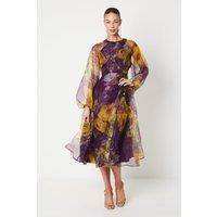 Exquisite organza midi dress with a vibrant floral print Flattering wrap waist design with a tie belt Voluminous puff sleeves adding a touch of drama Sheer overlay lending an ethereal, romantic feel lining ensuring a smooth, comfortable fit Radiate elegance and sophistication in this showstopping organza dress. The vibrant floral motif and sheer overlay exude a dreamy, feminine allure, perfect for formal occasions like weddings or the races. Pair with delicate jewellery and heeled sandals for a refined,...
