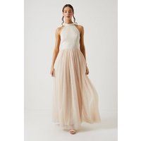 Exquisite halterneck bodice crafted from lustrous satin Voluminous tulle skirt cascading to a floor-sweeping maxi length Sleek racerback design accentuating the shoulders Concealed zip fastening for a seamless silhouette Fully lined for a smooth, flattering fit Radiate sophistication and elegance in this showstopping bridesmaids dress from Coast. The satin bodice exudes a luxurious sheen, while the billowing tulle skirt creates a dreamy, romantic aesthetic. Perfectly suited for the bridal party, this dr... - Manufacturers part number: Coast_5045744325854