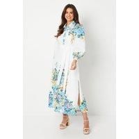 Floral print woven midi dress with a Western-inspired belted silhouette Collared neckline with button-through front for a smart finish Long sleeves with buttoned cuffs for a refined look Removable tie belt to cinch the waist for a flattering fit Midi length skirt with a subtle flare for effortless movement Exuding sophistication, this floral midi dress from Wallis is a versatile choice for daytime occasions. The Western-inspired belted silhouette lends a touch of glamour, while the woven fabric ensures a comfortable wear. Style it with heeled sandals and a crossbody bag for a chic ensemble perfect for family gatherings or casual events. | Wallis Women's Floral Western Belted Midi Shirt Dress in Ivory | Size: 16
