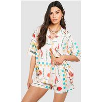 Vibrant Fruit-Inspired Print Co-Ord Set Relaxed Fit Shirt With Collared Neckline Matching Loose-Fitting Shorts For Ultimate Comfort Playful Geometric Patterns And Fruit Motifs Throughout Versatile Woven Crepe Fabric For A Breezy Feel Make A Statement This Season With This Eye-Catching Fruit Print Co-Ord Set From Boohoo. The Relaxed Fit Shirt And Matching Shorts Combo Is Perfect For Those Who Want To Stand Out Whilst Staying Comfortable. The Playful Print Features A Mix Of Fruit Motifs And Geometric Patterns, Creating A Fun And Fresh Look That'S Ideal For Casual Summer Outings. Style This Set With Simple Sandals And Layered Necklaces For A Day At The Beach, Or Dress It Up With Wedges And Statement Earrings For A Garden Party. The Versatile Nature Of This Co-Ord Allows For Mixing And Matching - Wear The Shirt With Plain Shorts Or Pair The Printed Shorts With A Solid Top For Endless Styling Options. This Set Is A Must-Have For The Fashion-Forward W... - Manufacturers part number: boohoo_5045745264893