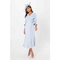 Designed lovingly for the mother of the bride or groom, this dress is perfect for your son or daughters registry office wedding. The wrap front bodice is complimented by the dainty ruffle cuff detail. Crafted from our signature satin back crepe fabric. Level of stretch: none.