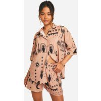 Striking Boho-inspired print featuring celestial and botanical motifs Oversized shirt with relaxed collar and short sleeves Coordinating shorts for a matching set look Lightweight woven crepe fabric for comfort and ease Versatile two-piece ensemble for mix-and-match styling Embrace the free-spirited essence of bohemian style with this captivating co-ord set. The oversized shirt boasts a relaxed silhouette, perfect for those balmy summer days, while the coordinating shorts offer both comfort and style. The eye-catching print, adorned with celestial symbols and botanical elements, adds a touch of whimsy to your wardrobe. Style this set together for a bold, cohesive look, or separate the pieces to create multiple outfits. Pair the shirt with denim cut-offs and sandals for a festival-ready ensemble, or team the shorts with a plain crop top for a more laid-back vibe. For a casual day out, throw on some trainers and a denim jacket for an effortlessly cool look. This versatile co-ord is ideal... - Manufacturers part number: boohoo_5045746946521