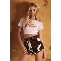 Genuine cow hide leather shorts for an authentic look Distinctive black and white pattern for a bold statement High-waisted design with belt loops for a flattering silhouette Relaxed fit through the leg for comfort and style Versatile piece suitable for various edgy outfits Make a daring fashion statement with these eye-catching cow hide leather shorts from NastyGal. Perfect for those who dare to be different, these shorts combine edgy style with a touch of Western flair. The high-wa...