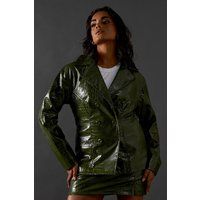 Striking croc-embossed texture for a bold, edgy look Waist detail accentuates the figure for a flattering silhouette Notched lapels and button-front closure for a classic jacket design Long sleeves with buttoned cuffs for a polished finish Coordinating mini skirt creates a sleek, cohesive ensemble Make a statement with this daring faux leather jacket from Warehouse. The eye-catching croc-embossed texture adds a touch of rebellious glamour to your wardrobe, perfect for the confident w... - Manufacturers part number: Warehouse_5045747294034