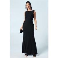 This maxi dress hugs your curves in all the right places for a flattering finish. The cowl back adds a touch of elegance, while the fishtail hemline creates a dramatic and glamorous effect. Perfect for a formal event or a special occasion, this dress is sure to turn heads. Made from Karina crepe: presented in an elegant matte finish, this rich fabric drapes over the body with structural fluidity, masterfully tracing and contouring the silhouette. Level of stretch: little. This dress fastens with...