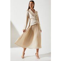 Coast Women's Tailored Pleat Skirt Midi Dress in Champagne | Size: 14