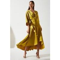 Elegant wrap-style midi dress with ruffle detailing Luxurious satin back crepe fabric for a sophisticated sheen Flattering V-neckline and kimono-inspired sleeves High-low hemline with dramatic ruffle cascade Cinched waist design for a feminine silhouette Embody grace and sophistication with this stunning satin back crepe midi dress from Coast. The wrap-style design creates a flattering silhouette, while the ruffle detailing adds a touch of drama and movement. Perfect for weddings, ra...