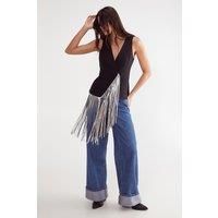 Sleek tailored design with a plunging V-neckline Eye-catching faux leather fringe detail along the sides Sleeveless silhouette for a modern, edgy look Adjustable buckle fastening at the back for a customised fit Versatile piece suitable for both casual and dressy occasions Make a bold statement with this tailored fringed top from NastyGal. The sleek design features a daring plunging V-neckline that adds a touch of allure, while the faux leather fringe detail along the sides creates a...