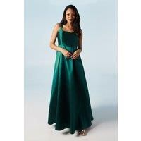 Scoop Neck Full Skirted Twill Bridesmaids Dress
