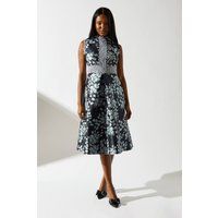 Exquisite jacquard fabric with a striking floral pattern Sleeveless design with a high neckline for a sophisticated look Intricate lace trim detailing along the bodice and waistline Flattering skater silhouette with a fitted waist and flared skirt Midi length perfect for formal occasions and special events This stunning jacquard lace trim dress from Coast is a true embodiment of elegance and style. The eye-catching floral pattern adorning the fabric creates a mesmerising visual effec... - Manufacturers part number: Coast_5045748913408