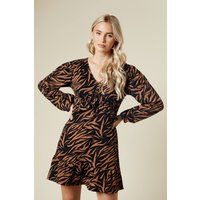 Striking Animal Print Pattern Throughout Flattering V-Neckline With Ruffle Bust Detail Tie-Front Design For Adjustable Fit Long Sleeves For Versatile Wear Midi Length With Subtle Flare At Hem This Dorothy Perkins Dress Radiates Effortless Style With Its Eye-Catching Animal Print And Feminine Silhouette. Perfect For The Fashion-Forward Woman In Her 30S Who Appreciates Trendy Yet Modest Designs. The Jersey Fabric Offers Comfort And Ease Of Movement, Ideal For Various Casual Occasions. Style It With Knee-High Boots For A Chic Brunch Look, Or Pair With Flats For A Relaxed Family Gathering. The Tie-Front And Ruffle Bust Add A Playful Touch, While The Midi Length Ensures A Sophisticated Appearance. Versatile Enough For Baby Showers Or Catch-Ups With Friends, This Dress Allows You To Customise Your Look With Accessories To Suit Any Casual Event. Machine Washable For Convenience, This Dress Is A Practical Yet Stylish Addition To Your Wardrobe That Will ... - Manufacturers part number: Dorothy Perkins_5045748985078