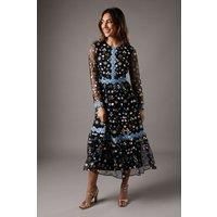 Exquisite hand-stitched embroidery featuring a delightful floral pattern Elegant maxi length with a flattering A-line silhouette Sheer long sleeves for a touch of allure Round neckline complemented by a defined waistline Intricate lace trim detailing along the bodice and skirt This enchanting embroidered floral maxi dress from Coast is a true masterpiece of elegance and sophistication. Perfect for those special occasions when you want to make a lasting impression, this dress combines...