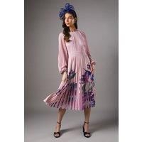 Elegant chiffon dress with pleated detailing Striking floral placement print on the skirt Round neckline and long balloon sleeves Fitted waist for a flattering silhouette Midi length with a flowing pleated skirt Make a statement at your next special occasion with this exquisite Coast dress. The chiffon fabric drapes beautifully, creating a graceful and feminine look. The fitted waist accentuates your figure, while the pleated skirt adds movement and drama. Perfect for weddings, race days, or formal events, this dress can be styled with strappy heels and a clutch bag for a sophisticated ensemble. For cooler evenings, layer with a tailored blazer or wrap. The versatile design allows for various accessorising options - pair with bold jewellery for added glamour or keep it simple with delicate pieces to let the dress shine. This Coast creation is sure to turn heads and have you feeling confident and elegant at any event. | Coast Women's Placement Print Pleat Dress in Pink | Size: 10