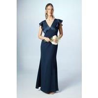 Elegant V-neckline for a flattering silhouette Graceful angel sleeves with delicate ruffles Luxurious satin fabric for a smooth, glossy finish Floor-length design with a subtle flare Cinched waist with a tie-back detail for a customised fit This enchanting bridesmaids dress from Coast is the epitome of sophistication and grace. The V-neckline beautifully frames the dcolletage, while the angel sleeves add a touch of whimsy and romance. The satin fabric drapes elegantly, creating a sle...