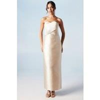 Elegant bandeau neckline for a sophisticated look Flattering twill fabric that drapes beautifully Statement bow detail at the back for added charm Floor-length design with a subtle side slit for ease of movement Sleek, figure-hugging silhouette to complement various body types This stunning bridesmaids dress from Coast is the epitome of elegance and grace. Perfect for your role in the bridal party, this gown will ensure you look and feel your best on the big day. The bandeau neckline...