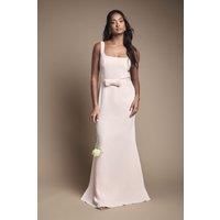 Elegant square neckline with wide shoulder straps for a sophisticated silhouette Charming bow detail at the waist adds a delicate feminine touch Flowing crepe fabric creates graceful movement as you walk Floor-length maxi design offers timeless bridesmaids appeal Clean lines and minimalist styling ensure focus remains on the bridal party ensemble This Coast square neck maxi dress embodies refined elegance perfect for your role in the bridal party. The structured bodice with its flatt...