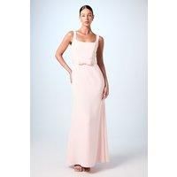 Elegant square neckline with wide shoulder straps for a sophisticated silhouette Charming bow detail at the waist adds a delicate feminine touch Flowing crepe fabric creates graceful movement as you walk Floor-length maxi design offers timeless bridesmaids appeal Clean lines and minimalist styling ensure focus remains on the bridal party ensemble This Coast square neck maxi dress embodies refined elegance perfect for your role in the bridal party. The structured bodice with its flatt...