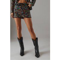 Hand embellished sequin hot pants for a dazzling statement look High-waisted design with a flattering fit Fully lined for comfort and coverage Striking vertical sequin pattern creates a lengthening effect Pairs perfectly with the matching sequin jacket for a coordinated ensemble Make a bold entrance at your next special occasion with these show-stopping sequin hot pants from Warehouse. The hand embellished design catches and reflects light with every movement, creating a mesmerising effect that demands attention. Style with the matching jacket as seen on our model for a coordinated look that radiates confidence, or pair with a simple black bodysuit to let the shorts take centre stage. The high-waisted silhouette is particularly flattering when worn with heeled boots for an edgy twist on evening attire. These versatile shorts transition effortlessly from cocktail parties to formal events-simply switch your footwear and accessories to suit the occasion. For a truly head-turning ensemble,... - Manufacturers part number: Warehouse_5045749488318