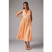 Exquisite floral lace overlay with scalloped hem detail for a refined finish Elegant V-neckline that frames the dcolletage beautifully Feminine bow-tie back detail adding a charming touch Flattering midi length perfect for petite frames Fully lined for comfort and structure whilst maintaining the delicate appearance of the lace This enchanting lace midi dress from Coast embodies timeless sophistication for your special occasions. The intricate floral pattern creates a romantic silhou... - Manufacturers part number: Coast_5045749819754