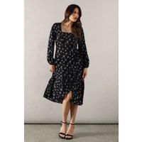 Elegant square neckline for a sophisticated look Long sleeves with gentle gathering for a feminine touch Charming all-over print adds visual interest Ruffle detail along the skirt creates movement and flair Midi length offers versatility for various occasions This Wallis printed midi dress radiates effortless charm and sophistication. The square neckline frames your dcolletage beautifully, while the long sleeves with subtle gathering add a touch of romance. The all-over print lends a playful yet refined air to the ensemble. The ruffle detail cascading down the skirt creates a graceful silhouette, perfect for twirling at casual gatherings. Ideal for family brunches or afternoon tea with friends, this dress can be styled with flat sandals and a woven bag for a relaxed daytime look. For a more polished appearance, pair it with block-heeled mules and delicate gold jewellery. The midi length ensures comfort and elegance, making it a versatile piece for various daywear occasions. This dress ...