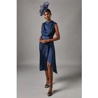High neckline with twist detail at waist Sleeveless design showcasing arms Flattering satin fabrication drapes gracefully Midi length hits at the calves This satin midi dress from Coast is a refined choice for formal events. Cut from smooth satin with a high neckline, this sleeveless dress skims the figure gracefully. A twist detail at the waist adds subtle interest. With its midi length hitting at the calves, this dress maintains an elegant silhouette. Styl...