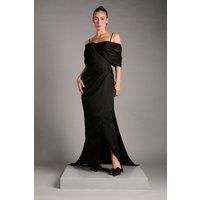 Elegant bardot neckline with delicate spaghetti straps for sophisticated support Luxurious satin finish that catches the light beautifully as you move Dramatic bow detail at the back creating a stunning focal point Figure-flattering draped design with subtle gathering at the waist Floor-sweeping length with a graceful side split for ease of movement Make a captivating entrance in this show-stopping bardot dress from Coast. The sophisticated off-shoulder design combines with thin stra...