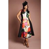 Sleeveless plus size dress in a scuba. The midi length and floral embellishment will make a statement at any christening, wedding or date night. Figure hugging and the panel detailign will accentuate your curves. | Coast Women's Plus Colour Block Scuba Midi Dress | Size: 24