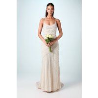 Exquisite hand-embellished detailing across the bodice creates a shimmering, cascading effect Elegant strappy neckline with delicate spaghetti straps for a graceful silhouette Beautifully draped fabric with intricate directional beadwork that catches the light Figure-enhancing design with strategic ruching that flatters the natural contours Dramatic floor-sweeping train adds a touch of regal splendour to your bridal ensemble Make an unforgettable entrance on your special day in this ... - Manufacturers part number: Coast_5045770437248