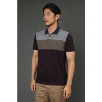 Distinctive feeder placement stripe design across the chest for a contemporary look Classic polo collar with contrast tipping for refined detailing Short sleeves with comfortable fit for ease of movement Maine embroidered logo for authentic brand recognition Versatile design that pairs perfectly with chinos or jeans for everyday wear This Maine Feeder Placement Stripe Polo Shirt combines classic style with modern design elements for a versatile addition to your casual wardrobe. The horizontal stripe pat...