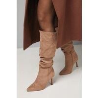 Elegant knee-high boots with sophisticated ruched detailing for added texture and visual interest Pointed toe design creates a flattering, elongated silhouette Comfortable wide fit construction ensures all-day wearability Stylish 7-9cm stiletto heel adds height while maintaining a refined profile Soft faux suede finish offers a luxurious look and feel with versatile styling potential These Wallis Hibiscus knee boots combine sophistication with practicality for the woman who values both style and comfort. The ruched detailing adds a touch of glamour to the soft faux suede texture, while the wide fit construction ensures they remain comfortable throughout the day. Style these versatile boots with a midi dress and oversized cardigan for family gatherings, or pair with skinny jeans and a tailored coat for a polished daytime look. The 7-9cm stiletto heel provides an elegant lift without compromising on wearability, making these boots perfect for shopping trips, lunch dates or casual social ... - Manufacturers part number: Wallis_5045770591001