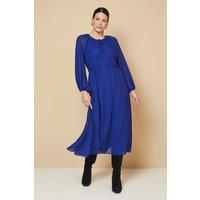 Elegant midi dress with sophisticated tie front detail at the neckline Flattering gathered waist design creates a feminine silhouette Flowing long sleeves with gentle volume for graceful movement Versatile crew neckline with delicate gathering for added texture Fully lined for comfort and a smooth drape that falls beautifully to mid-calf This sophisticated Wallis midi dress combines comfort with effortless style for your daywear wardrobe. The gathered waist detail creates a flattering shape that complements all figures, while the flowing fabric moves gracefully with every step. Style with ankle boots as shown for casual family gatherings, or pair with ballet flats and a structured blazer for lunch with friends. The versatile design works beautifully with both statement jewellery for a more dressed-up look or minimal accessories for understated elegance. Layer with a tailored denim jacket and trainers for weekend shopping trips, or add a cosy cardigan and tights when the temperature dro...