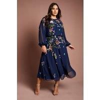 Plus Size Long Sleeve Floral Embellished Sequin Midi Dress | Coast Women's Plus Size Long Sleeve Floral Embellished Sequin Midi Dress in Navy | Size: 20