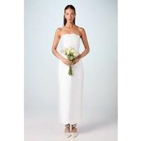 Elegant bandeau neckline with distinctive scallop detailing for a modern bridal silhouette Sophisticated column cut that creates a sleek, statuesque profile Structured twill fabric that maintains shape beautifully throughout your special day Floor-length design with a subtle back split for ease of movement Clean, minimalist aesthetic perfect for the contemporary bride Make a striking statement on your wedding day with this beautifully crafted Coast bridal dress. The column silhouette creates a refined, elongated look whilst the scallop detail along the bandeau neckline adds a delicate, feminine touch. Style with strappy heels as shown and a sleek updo to showcase the elegant neckline, or wear your hair down in soft waves for a more romantic feel. The structured twill fabric offers a polished finish that photographs beautifully in both natural and venue lighting. Perfect for modern ceremonies, garden celebrations or sophisticated city weddings, this dress can be accessorised with a stat...