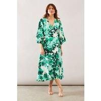 Elegant Wrap Design With Flattering V-Neckline For A Sophisticated Silhouette Feminine Ruffle Detailing Adds Movement And Visual Interest To The Midi Length Three-Quarter Length Sleeves With Statement Flared Cuffs For A Graceful Touch Soft Viscose Fabric Ensures Comfort Whilst Maintaining A Polished Appearance Versatile Midi Length Perfect For Various Daytime Occasions This Captivating Floral Wrap Dress From Wallis Combines Comfort With Sophistication For Effortless Daytime Glamour. The Flattering Wrap Design Cinches At The Waist To Create A Feminine Silhouette, Whilst The Ruffle Detailing Adds A Playful Touch To The Flowing Midi Length. Style With Strappy Sandals And Delicate Jewellery For Family Gatherings Or Weekend Brunches. For A More Casual Approach, Pair With White Trainers And A Denim Jacket For Shopping Trips Or Garden Parties. The Breathable Viscose Fabric Ensures All-Day Comfort Without Compromising On Style, Making This Dress A Versa...
