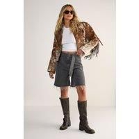 Distinctive frayed hem detail for an edgy, lived-in look Matching fabric belt with metal eyelets for adjustable fit and added style High-waisted design that flatters the silhouette Practical side pockets for everyday essentials Relaxed, knee-length cut offering comfort and versatility These Nasty Gal frayed denim shorts combine casual comfort with statement style. The distinctive frayed edges create a deliberately undone aesthetic that works brilliantly for daytime adventures. Style ...