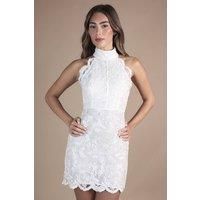 High Neck Embroidered Mesh Mini Wedding Dress | Coast Women's High Neck Embroidered Mesh Mini Wedding Dress in Ivory | Size: 18