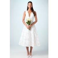 Striking plunge V-neckline creates a flattering, feminine silhouette Textured jacquard fabric adds dimension and visual interest to the design Full skirted midi length offers graceful movement as you walk Open back detail provides an elegant touch of allure Sleeveless design showcases shoulders beautifully for warm-weather celebrations This enchanting midi dress from Coast embodies bridal sophistication with its contemporary silhouette and timeless appeal. The dramatic plunge V-neckl...