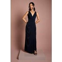 Elegant V-neck design with flattering wrap-style bodice Sleeveless silhouette perfect for formal wedding celebrations Sophisticated ruched waistband creating a defined silhouette Floor-length georgette fabric with graceful drape and movement Subtle side split for ease of movement whilst maintaining elegance This stunning Coast bridesmaid dress combines timeless sophistication with contemporary styling. The wrap-effect bodice creates a flattering V-neckline that frames dcolletage beautifully, whilst the ruched waistband cinches in to create an hourglass silhouette. Crafted from flowing georgette fabric that moves gracefully with every step, this floor-length gown is designed to complement the bridal party with understated elegance. Style with delicate drop earrings and a simple bracelet as shown for a coordinated bridal party look. The sleeveless design is perfect for spring and summer weddings, whilst also layering beautifully under a tailored cover-up for cooler celebrations. Complete...