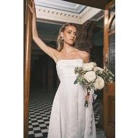 Elegant bandeau neckline with structured corset bodice for a flattering silhouette Luxurious satin fabric with a subtle sheen that catches the light beautifully Classic A-line shape with dramatic flowing skirt for timeless bridal elegance Clean, minimalist design perfect for showcasing statement jewellery and accessories Structured back with refined tailoring that ensures a perfect fit for your special day Make a striking impression on your wedding day with this sophisticated bandeau...