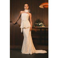 Exquisite lace maxi skirt with a striking peplum waistline for a flattering silhouette Elegant strapless design with optional high-neck lace collar detail for versatile styling Figure-enhancing fishtail hem with graceful train for dramatic movement Delicate all-over lace pattern showcasing intricate craftsmanship Satin waist tie to accentuate and define your shape Make a breathtaking entrance on your special day with this Coast Lace Bridal Maxi Skirt. The sophisticated peplum detail creates a stunning hourglass shape whilst the fishtail silhouette elegantly pools at your feet for that perfect bridal moment. Style with the matching lace collar for a contemporary twist on traditional bridal wear, or wear strapless for a classic, timeless look. The intricate lace pattern catches the light beautifully as you move, creating a truly magical effect for your walk down the aisle. Perfect for the modern bride seeking something uniquely elegant, this skirt pairs wonderfully with delicate pearl ac... - Manufacturers part number: Coast_5045770886947