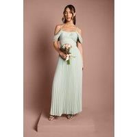 Elegant Bardot neckline with delicate off-shoulder detailing for a romantic silhouette Flowing maxi length with intricate pleating throughout the skirt for graceful movement Sophisticated crepe fabric offering a luxurious drape and comfortable wear Flattering fitted bodice with subtle ruching detail enhancing the feminine form Thin adjustable straps providing additional support whilst maintaining the delicate aesthetic This stunning Coast bridesmaid dress combines timeless elegance w...