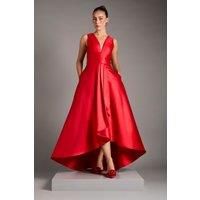 Dramatic plunge neckline creates a striking focal point Elegant waterfall detail adds movement and dimension High-low hemline with sweeping train for a grand entrance Practical side pockets discreetly integrated into the design Structured twill fabric maintains the gown's architectural silhouette Make a statement at your next formal occasion in this show-stopping Coast maxi dress. The architectural design features a deep plunge neckline that frames the dcolletage beautifully, while the waterfall drape cascades dramatically from waist to floor. The high-low hemline offers the perfect balance of sophistication and allure, allowing you to showcase statement footwear. Style with sleek, minimal accessories-a pair of elegant drop earrings and matching pointed court shoes complete the ensemble without overwhelming the dress's sculptural form. Perfect for weddings, race days or black-tie events where you wish to command attention with refined elegance. The clean lines and thoughtful constructi...